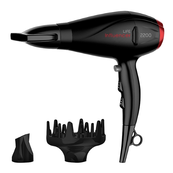 Το σεσουάρ LIFE Influencer με το μοντέρνο και κομψό design, αποτελεί ιδανική επιλογή για κάθε χρήστη. Το δυνατό AC μοτέρ των 2200W, δημιουργεί μία εξαιρετικά ισχυρή ροή αέρα κάνοντας το στέγνωμα και το φορμάρισμα των μαλλιών σας εύκολο και γρήγορο. Τα αποσπώμενα ακροφύσια καλύπτουν κάθε ανάγκη, καθώς περιλαμβάνονται Slim στόμιο για ιδανικό ίσιωμα, στόμιο για γρήγορο και εύκολο στέγνωμα και φυσούνα για δημιουργικό φορμάρισμα και έξτρα όγκο!